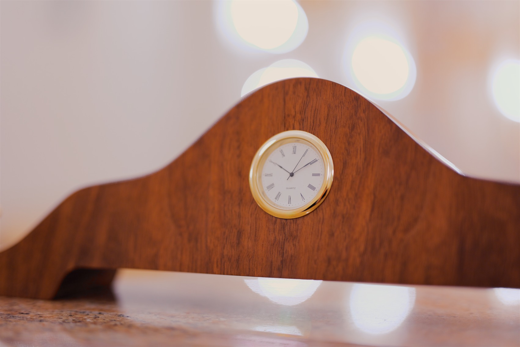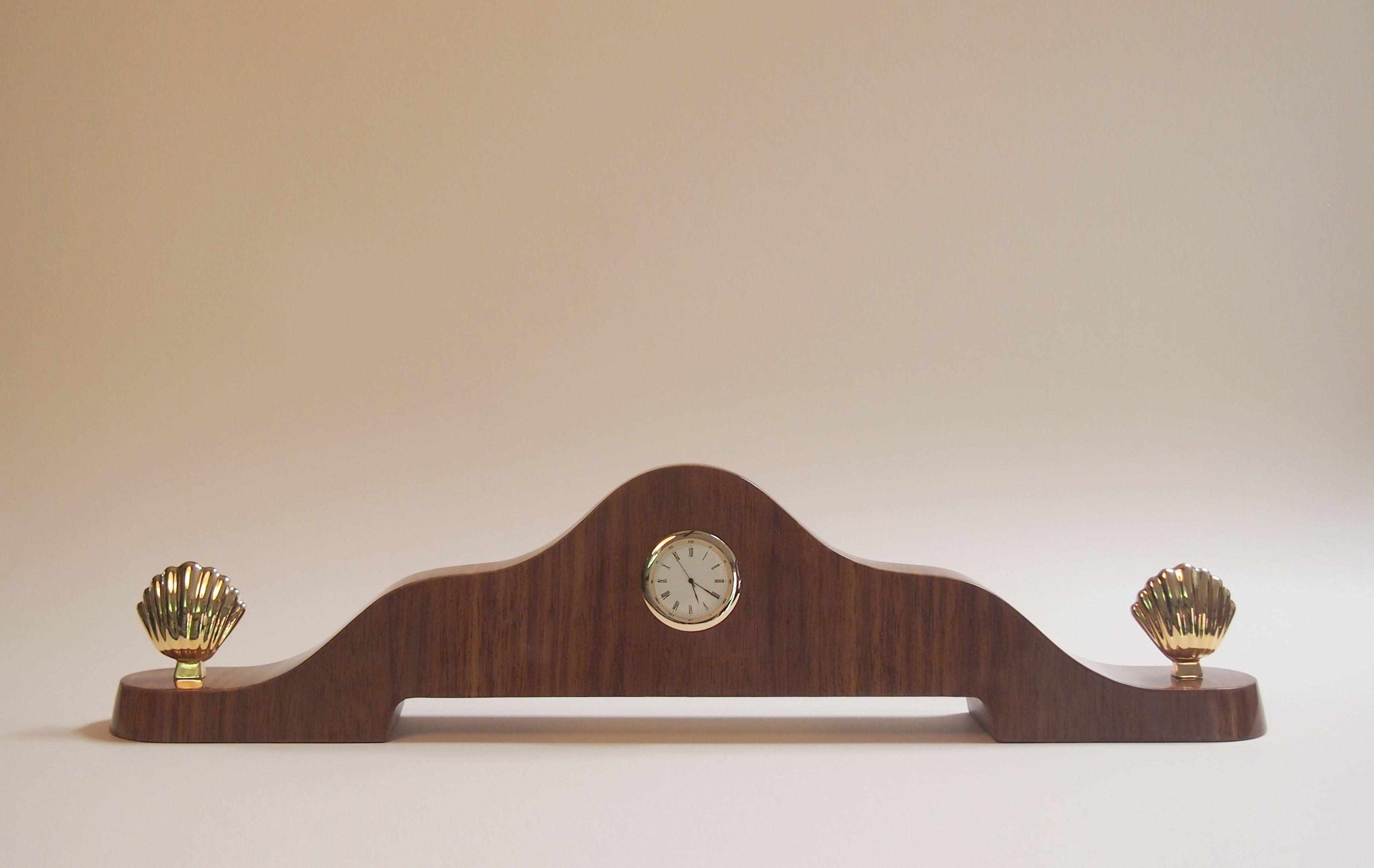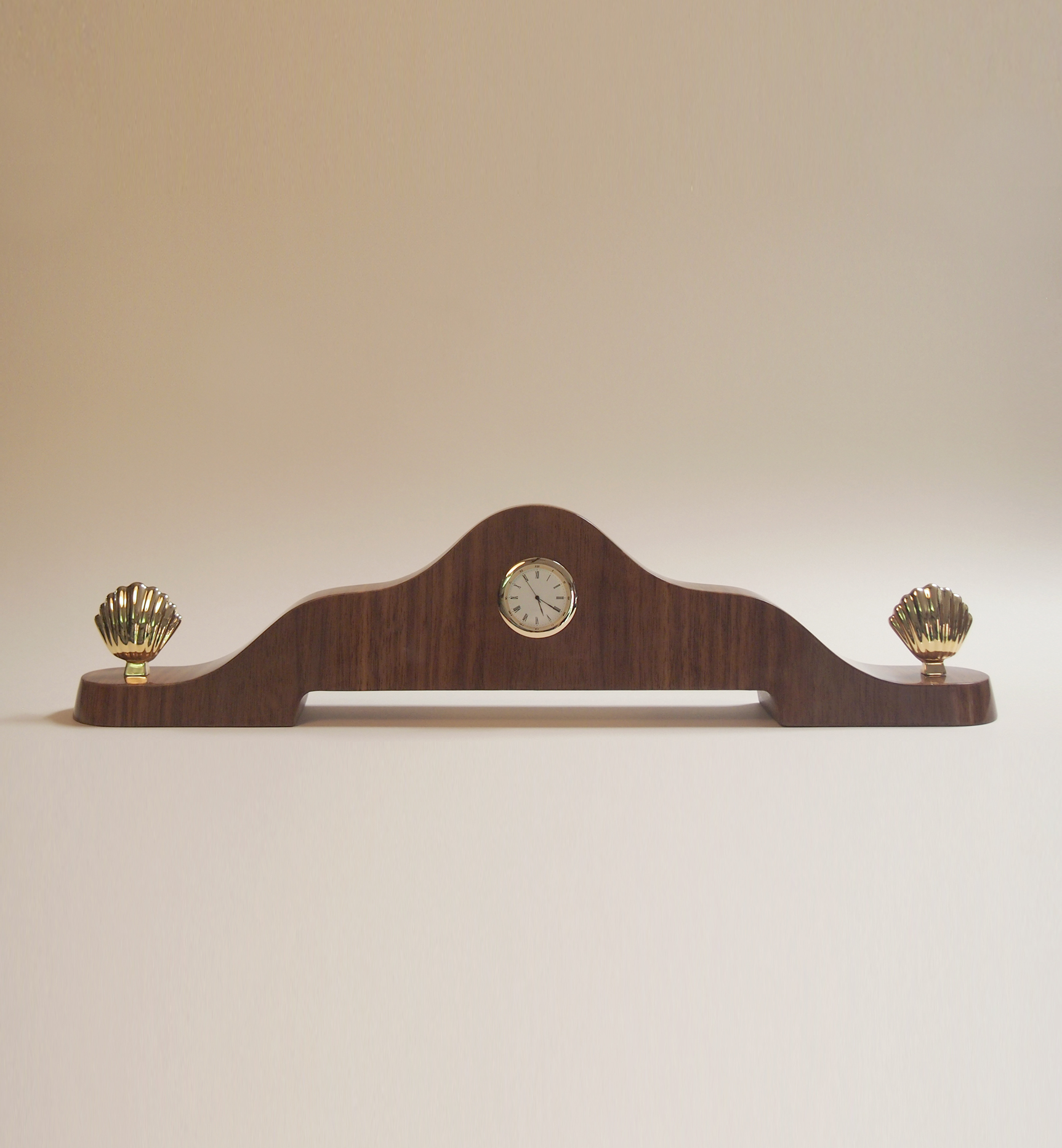 Wave table clock is  a premium accessory on a table. Handcrafted in limited edition, the surface is made of individually selected veneers. The clockwork is complemented by individually casted 23-carat gold-plated bronze applications designed specifically for the Wave collection. The product can be customised with personal dedicated brass plate on the front face. Overall dimensions are 20 in x 4 in x 2 in