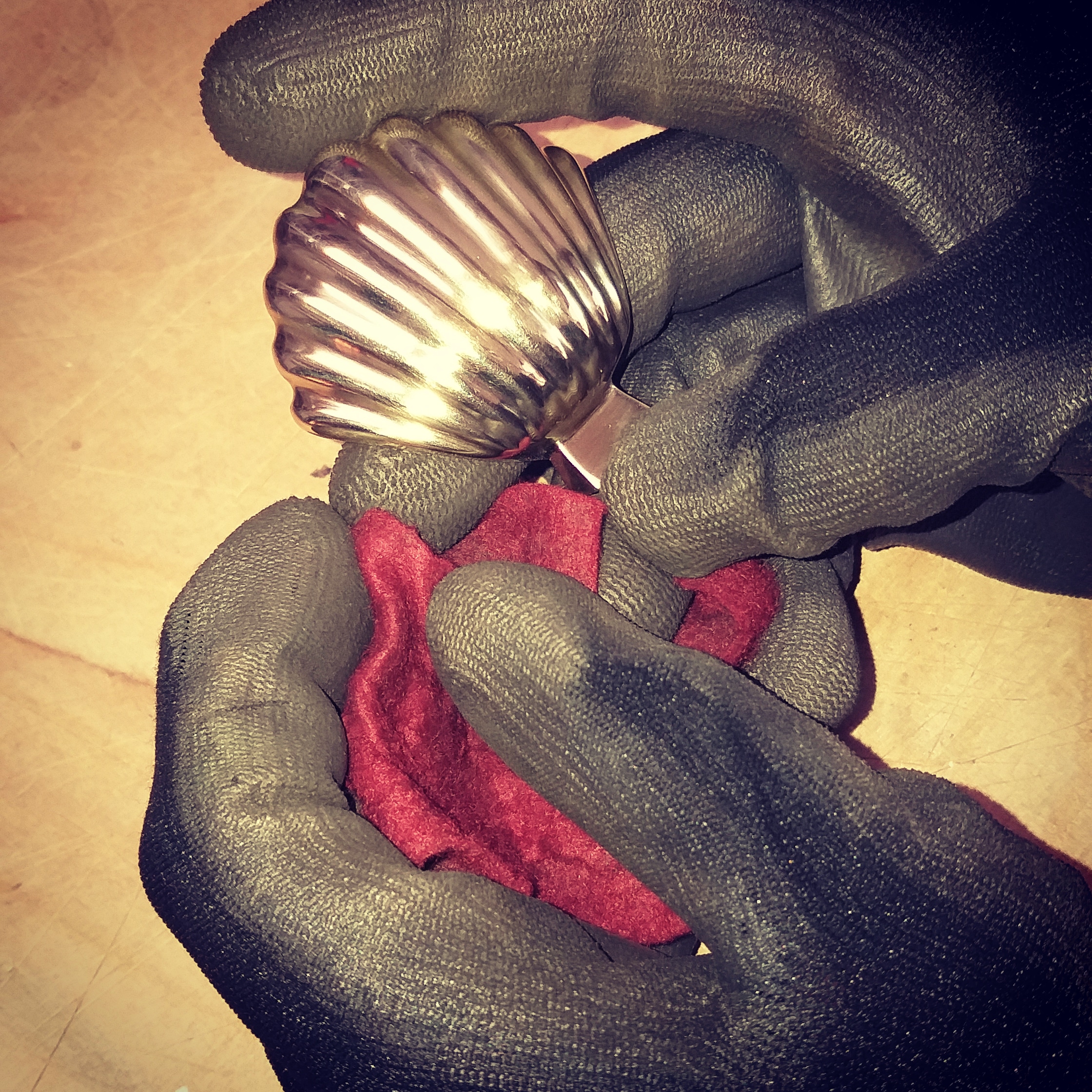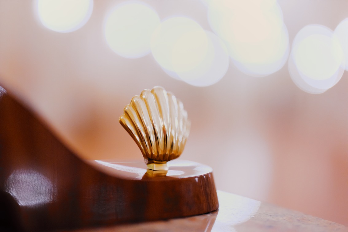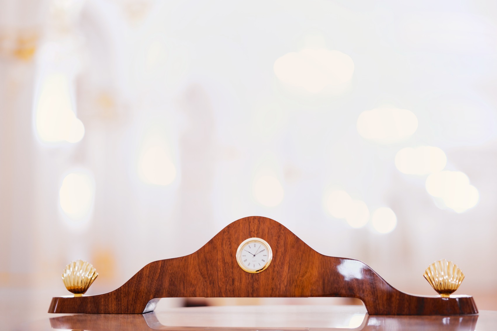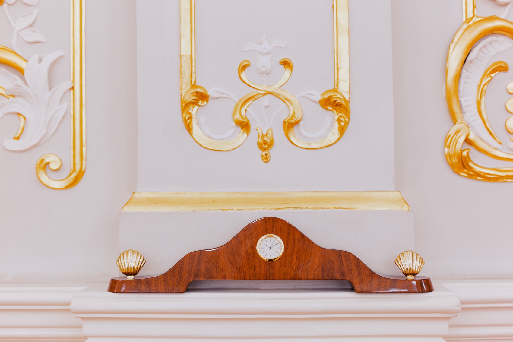 Wave table clock is  a premium accessory on a table. Handcrafted in limited edition, the surface is made of individually selected veneers. The clockwork is complemented by individually casted 23-carat gold-plated bronze applications designed specifically for the Wave collection. The product can be customised with personal dedicated brass plate on the front face. Overall dimensions are 20 in x 4 in x 2 in
